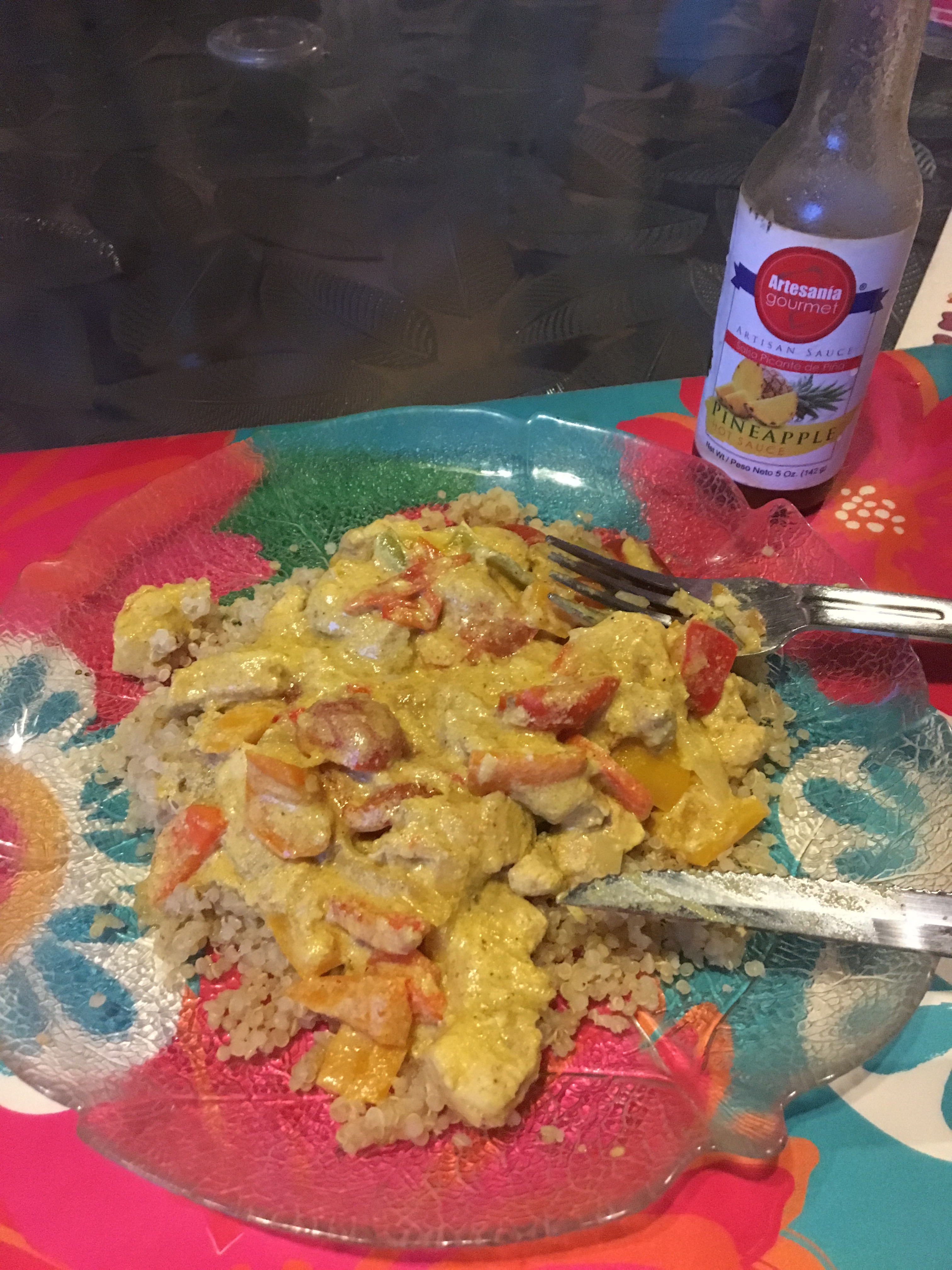 Así de sencillo. En mi caso, me la serví con quinoa. Y para darle un toque especial, le eché un pique con sabor a piña.
