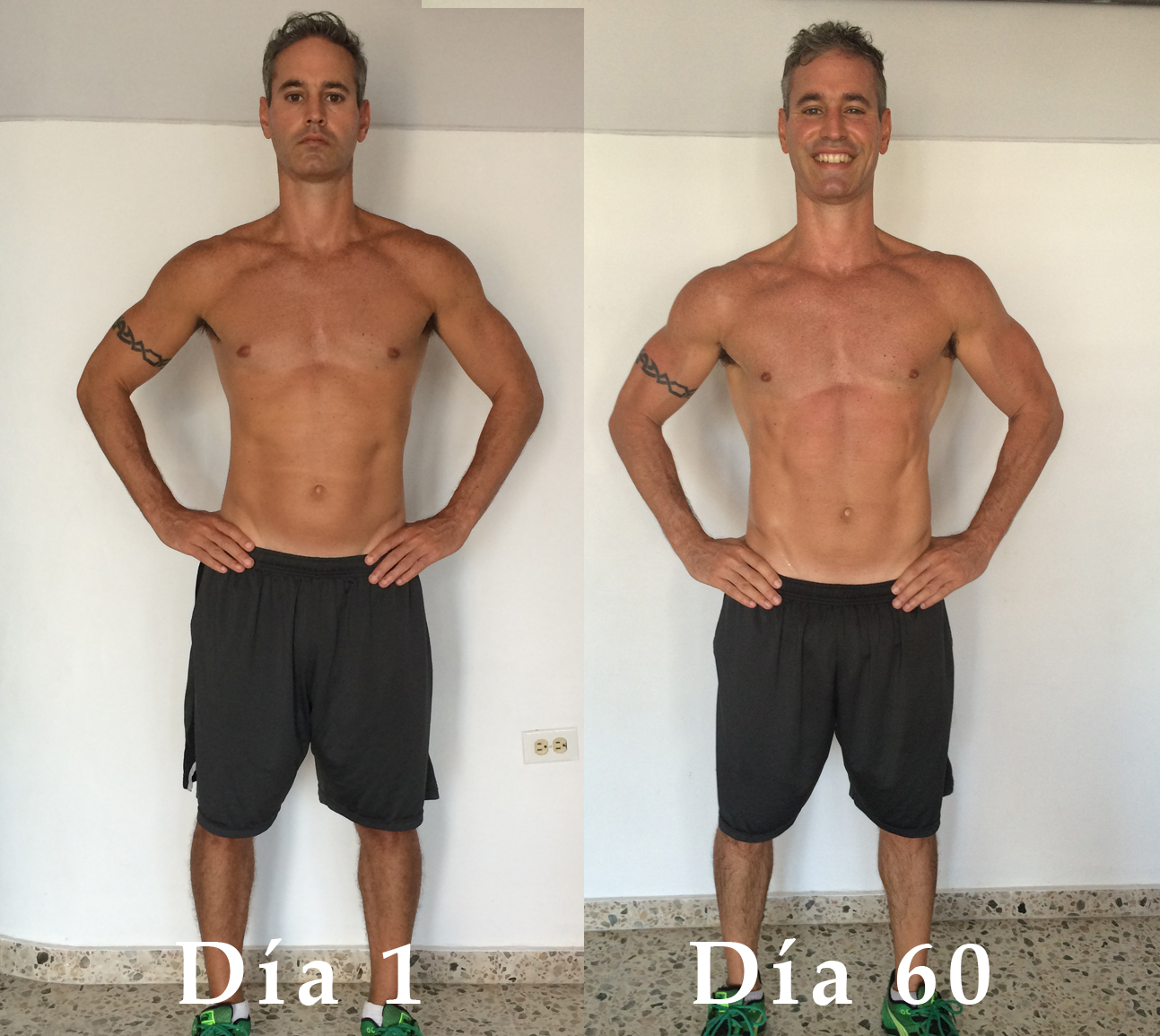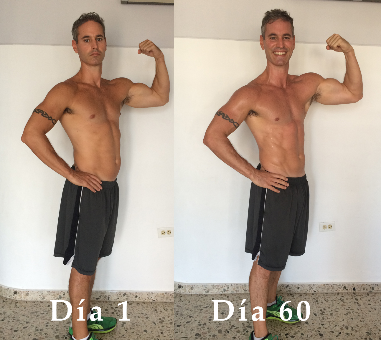Yep, aumenté 6 libras y 4.25 pulgadas totales. Sin embargo, la mejor parte: ¡bajé 3.75″ de cintura! Ese temor de aumentar la pipa estaba infundado. ¡Me siento brutal, bien contento, y bien fuerte! Me siento con mucho más energía y fortaleza. Ah, y me siento más grande. Honestamente puedo decir que éste es mi programa favorito de Beachbody. Yo he completado casi todos (excepto los de baile) y entiendo que este programa está a un nivel superior. La variedad de las rutinas te mantienen fresco y se sienten nuevas. No piensas que estás haciendo lo mismo semana tras semana. Y tiene una gran combinación de resistencia, cardio/agilidad y levantamiento de pesas. Añadir rutinas de balance ayudan a fortalecer el core. ¿Qué tal fotos de lado a lado, Día 1 y Día 60?