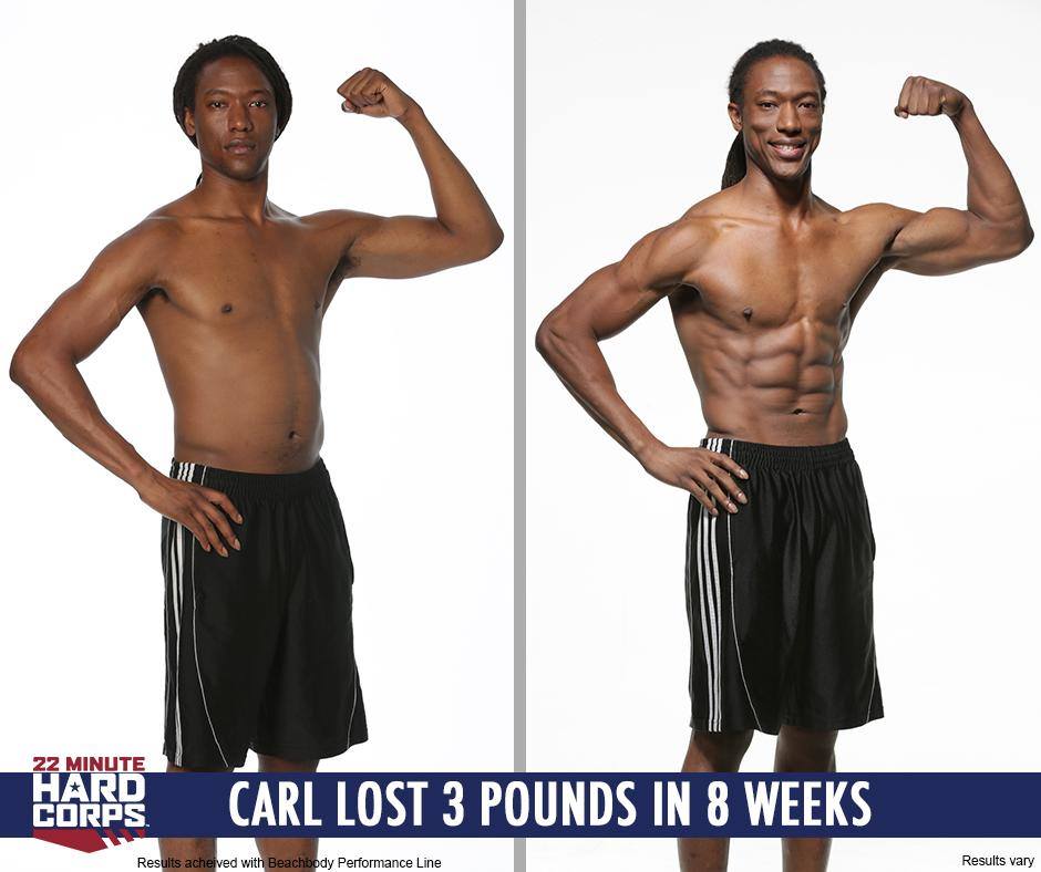 Algo que siento debo mencionar acerca de estos resultados: fíjate que la pérdida en libras en 8 semanas no es bien grande. Sin embargo, mira la transformación de sus cuerpos. De nuevo, mucha gente se enfoca demasiado en el número que dice la balanza en vez de cómo se ven. Empiezan su rutina, la ropa les queda más suelta, los pantalones se les caen, tienen más energía, las personas le comentan que se ven más delgados, pero entonces se trepan en la balanza y se frustran por un número. Así que confía en el proceso y olvídate del número de balanza. Enfócate en dar tu máximo todos los días y los resultados llegarán.