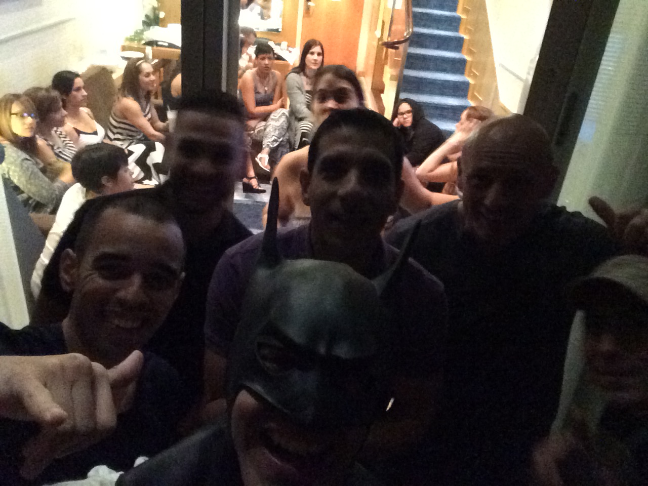 Pero terminaron fundidas, y las llevamos a dormir. Aprovechamos Yadira y yo para ir a visitar a Team Spartacus en la suite de Irene.